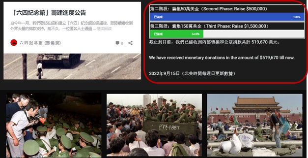 据「六四纪念馆」9月15日筹建进度公告:自2022年1月,六四学运领袖王丹等50余名海外民运人士联合发起在纽约建立「六四」·纪念馆的倡议后,陆陆续续收到外界大量的捐款支持。前不久,一位匿名人士通过相应管道捐款12万美元,目前款项已经到帐。截至2022年9月15日,六四纪念馆筹备委员会已经收到捐款近52万元(包含已支出费用,主要用于华盛顿「六四」特展),提前17个月完成第二阶段的筹款目标。