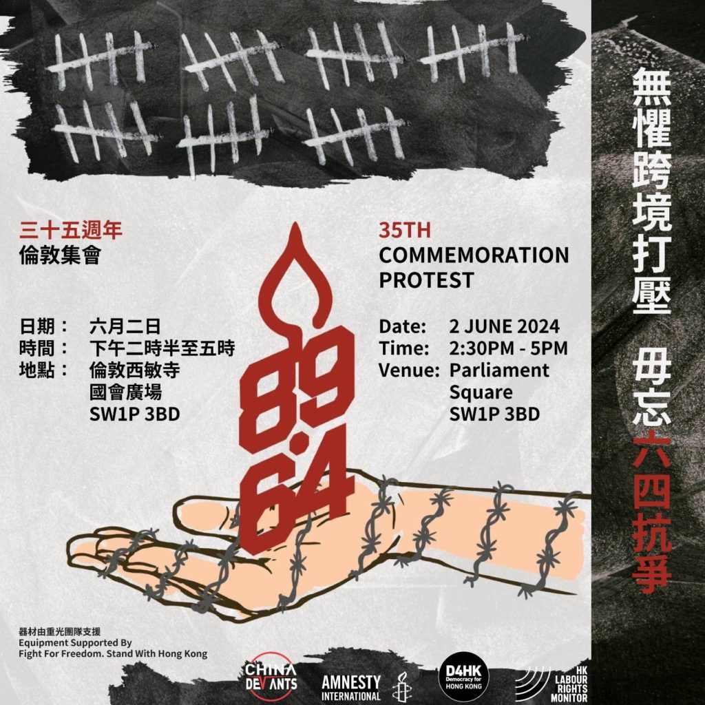 主辦團體:國際特赦組織英國分會、香港勞權監察、China Deviants、Democracy for Hong Kong(D4HK)