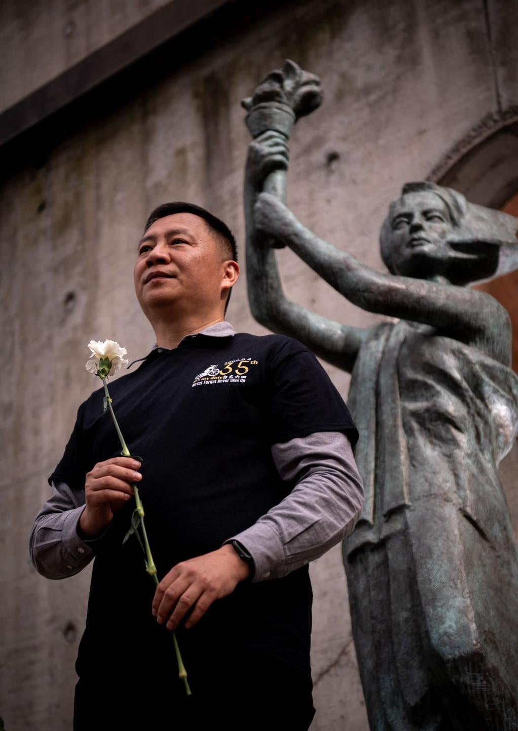 六四民主女神像獻花