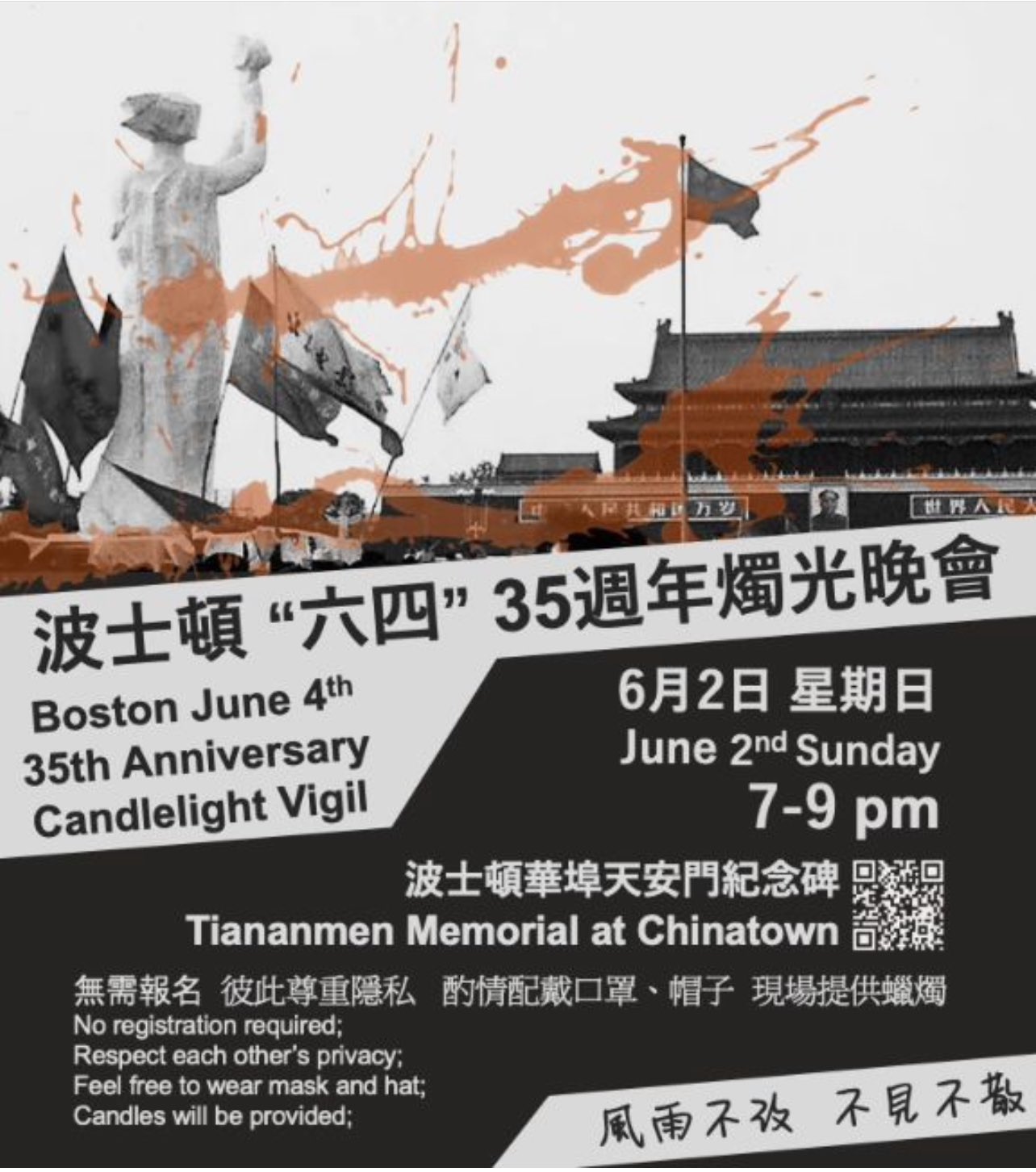 地點:波士頓華埠天安門紀念碑前