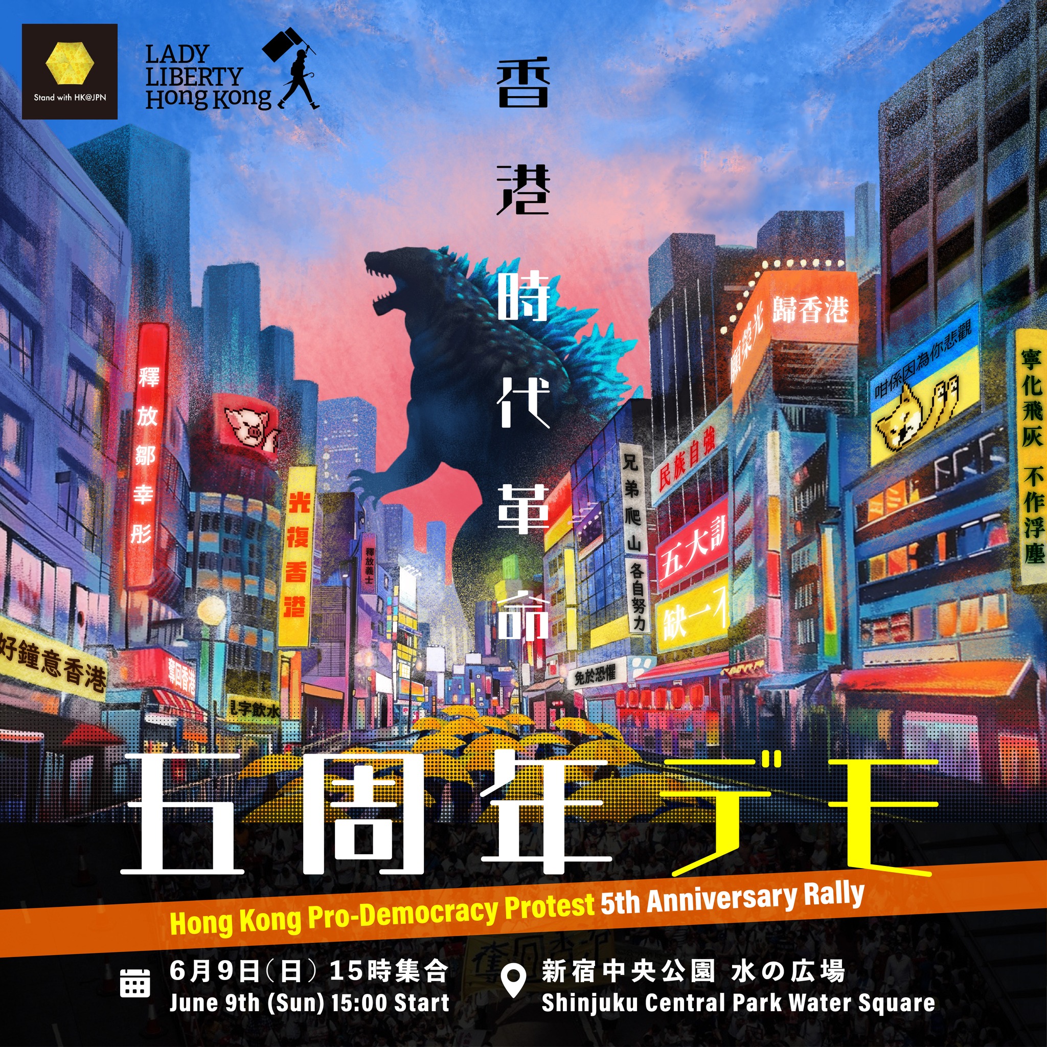 日本戰線將會喺6月9日舉行示威活動、希望大家可以參與。示威活動喺由 Lady Liberty HK 香港民主女神 和 Stand with HK at JPN 主辦。